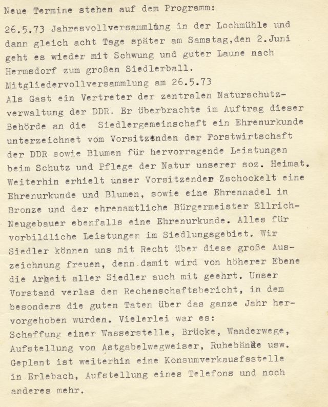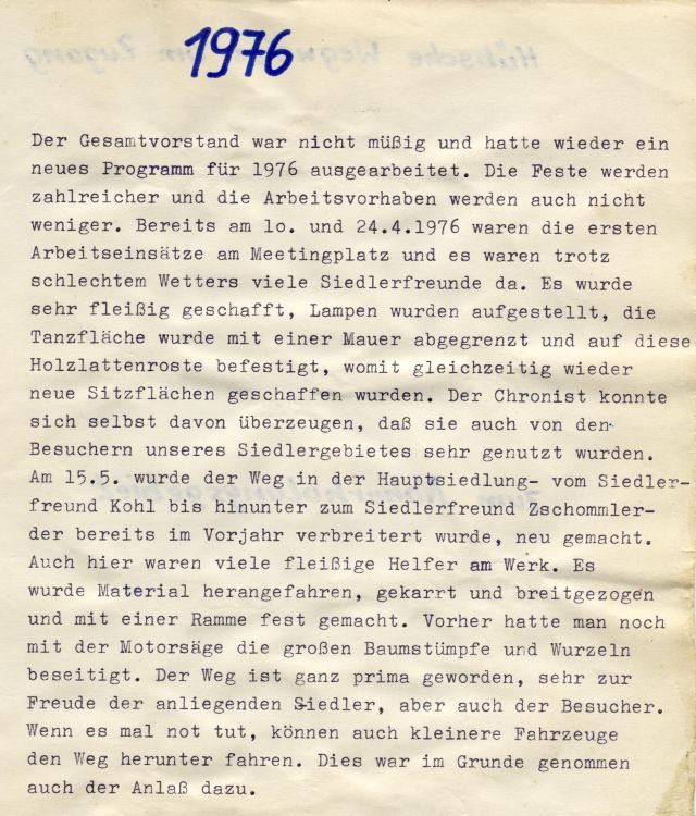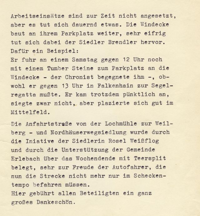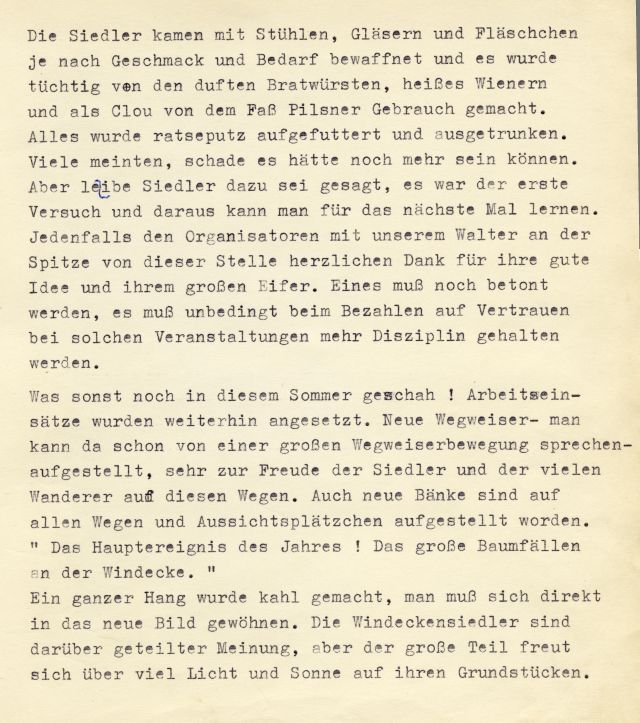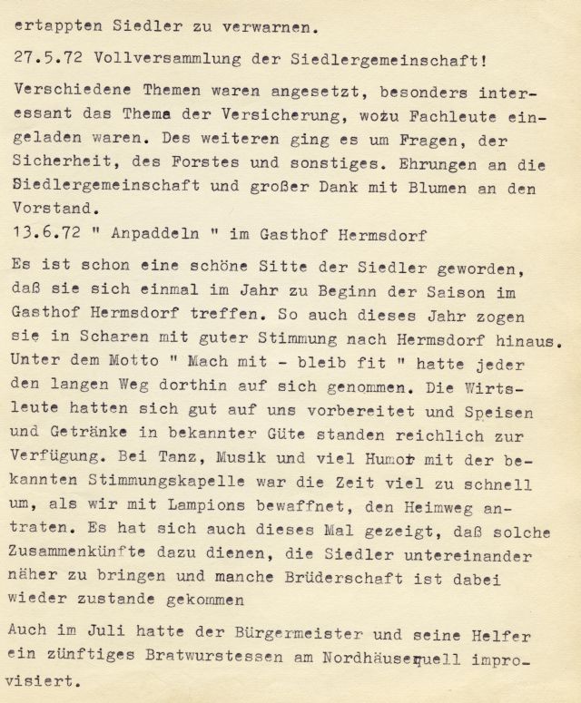 Der Verein arbeitet eng mit der Siedlergemeinschaft „Weilbergsiedlung“ im gegenseitigen Interesse