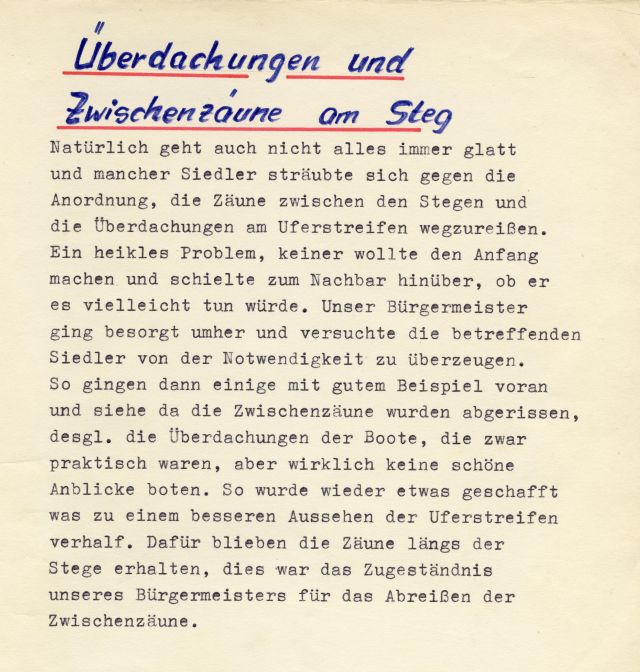 f) Verabschiedung einer Ordnung über das Verhalten im Bereich der Siedlergemeinschaft