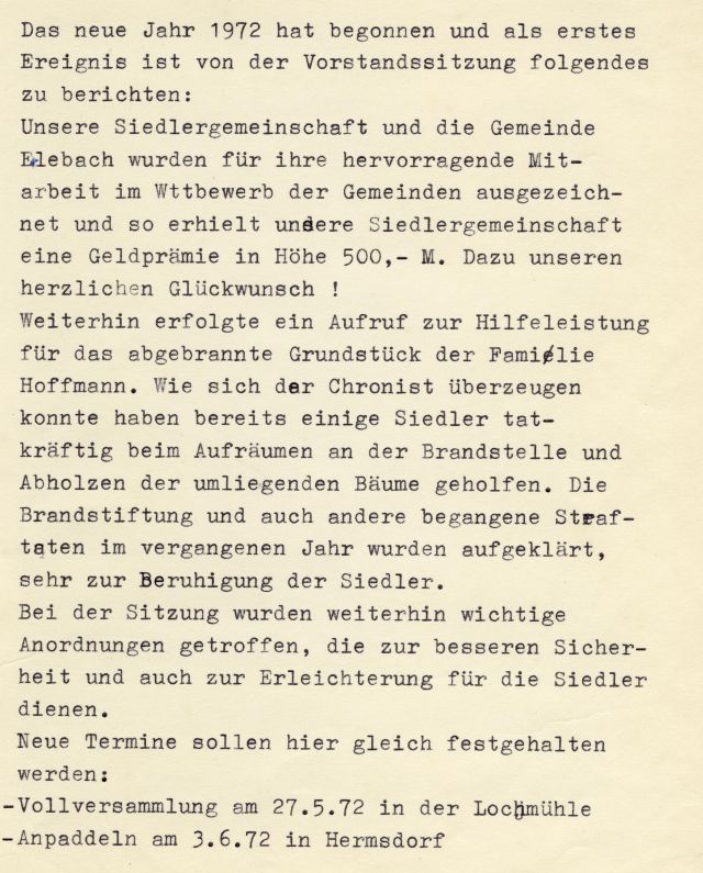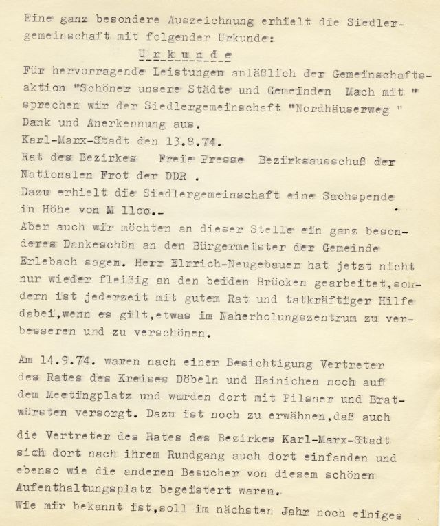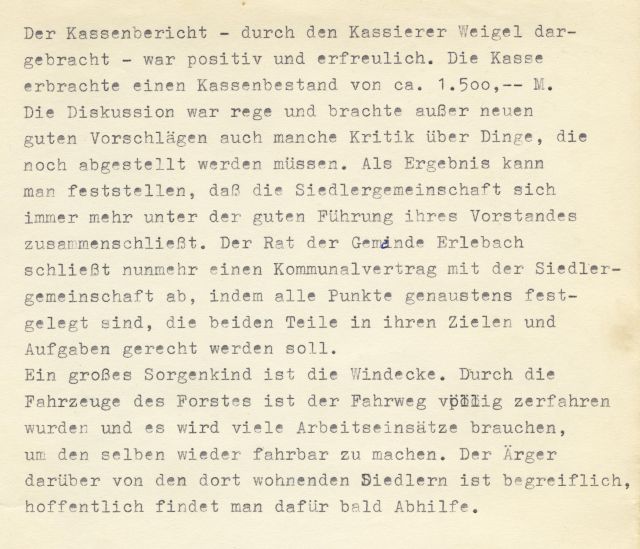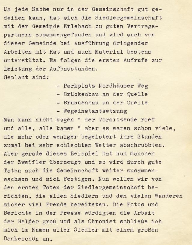 Der Verein führt den Namen Siedlergemeinschaft „Nordhäuser Weg“ Erlebach e. V. und ist im